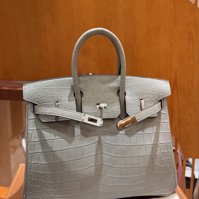 Birkin 25 in Grey Matte Crocodile PHW