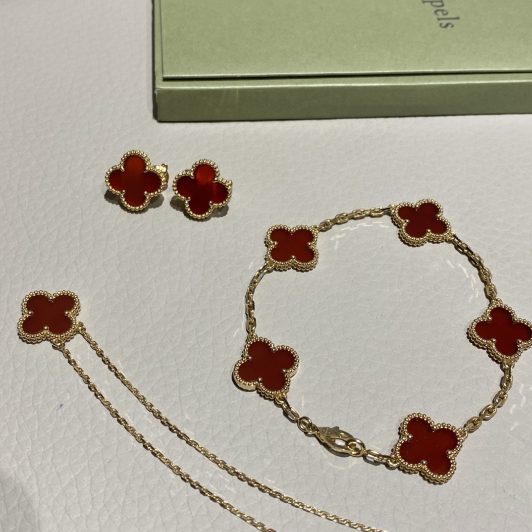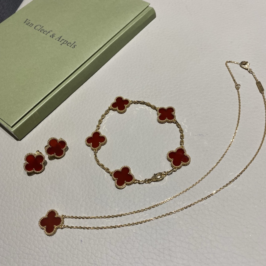 VCA Sweet Alhambra Necklace 18k gold&agate
