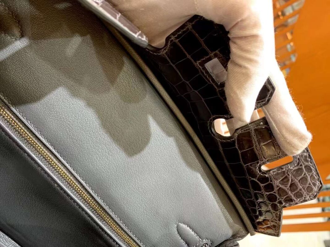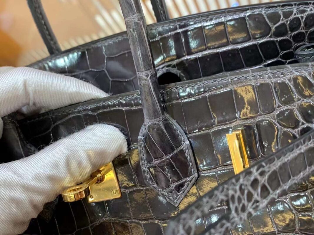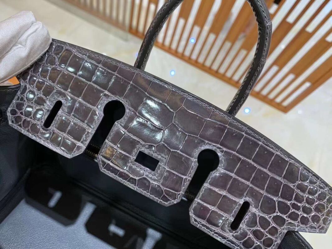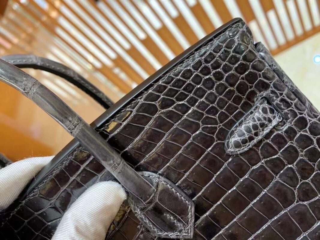 Birkin 25 Shiny Alligator Leather in Graphite Grey