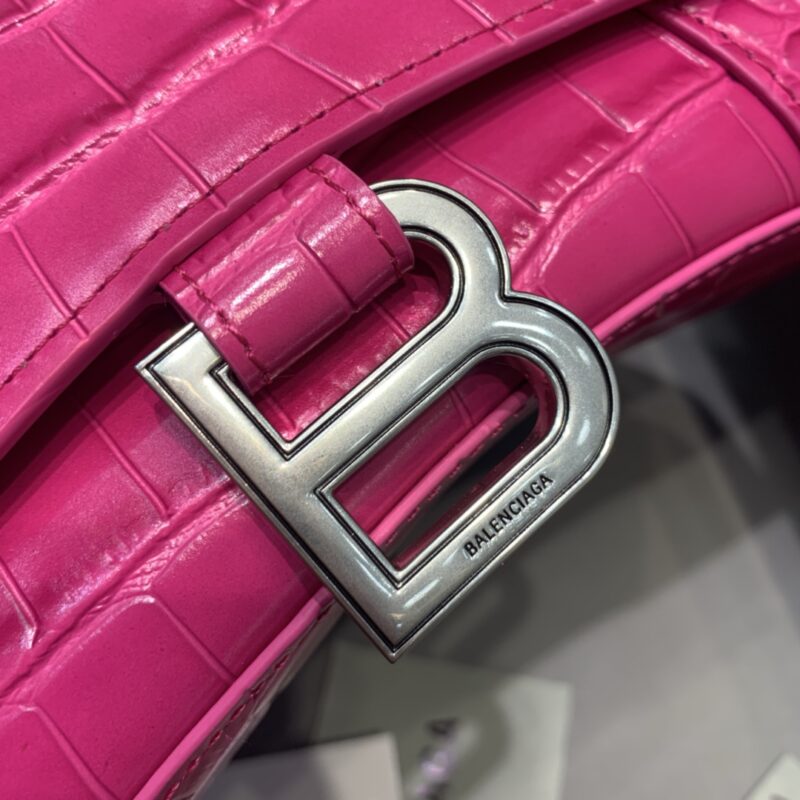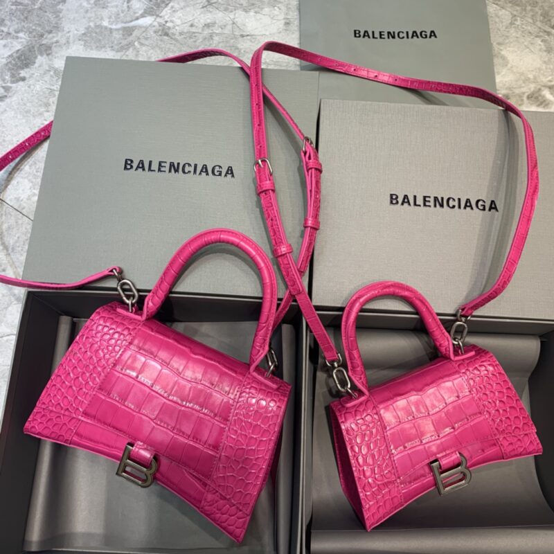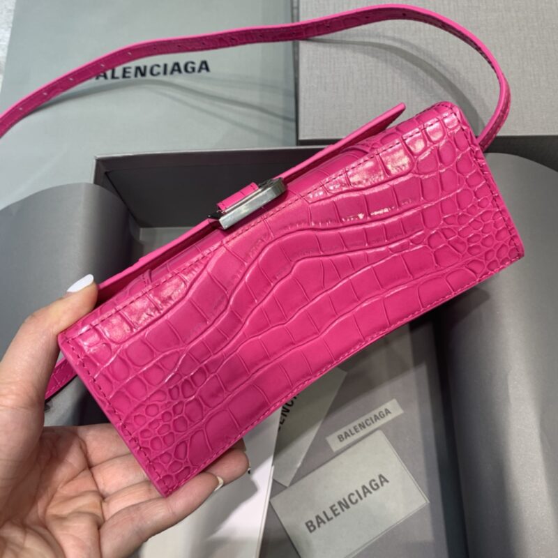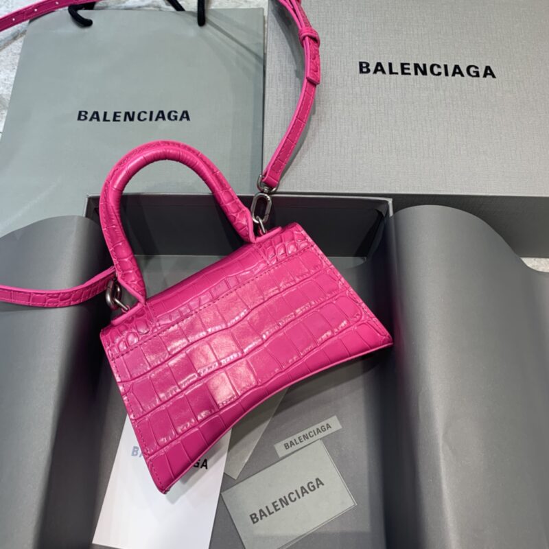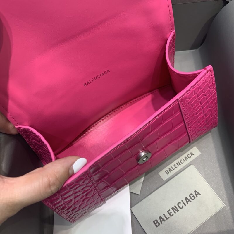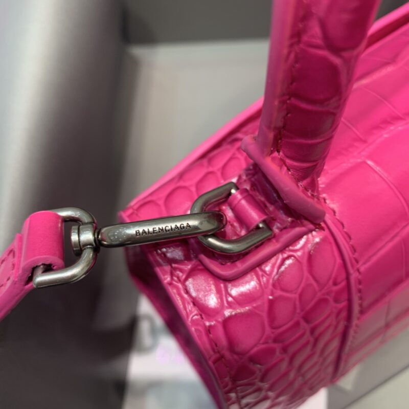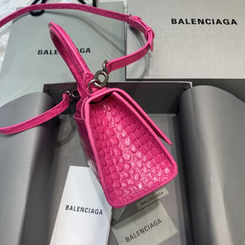 Balenciaga Mini Hourglass Bag in Rose Red Crocodile Pattern