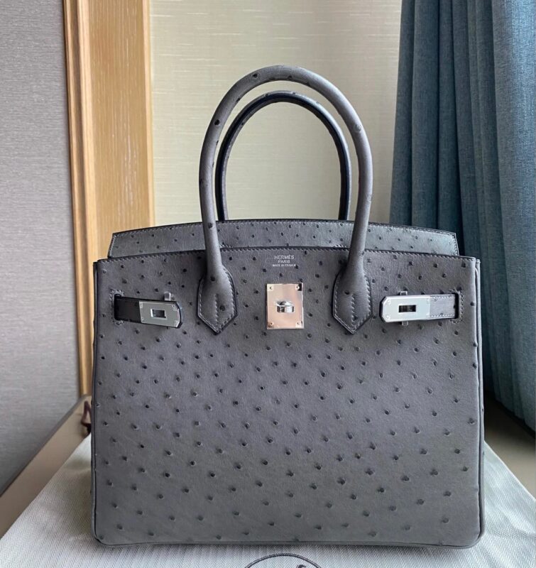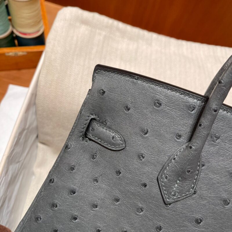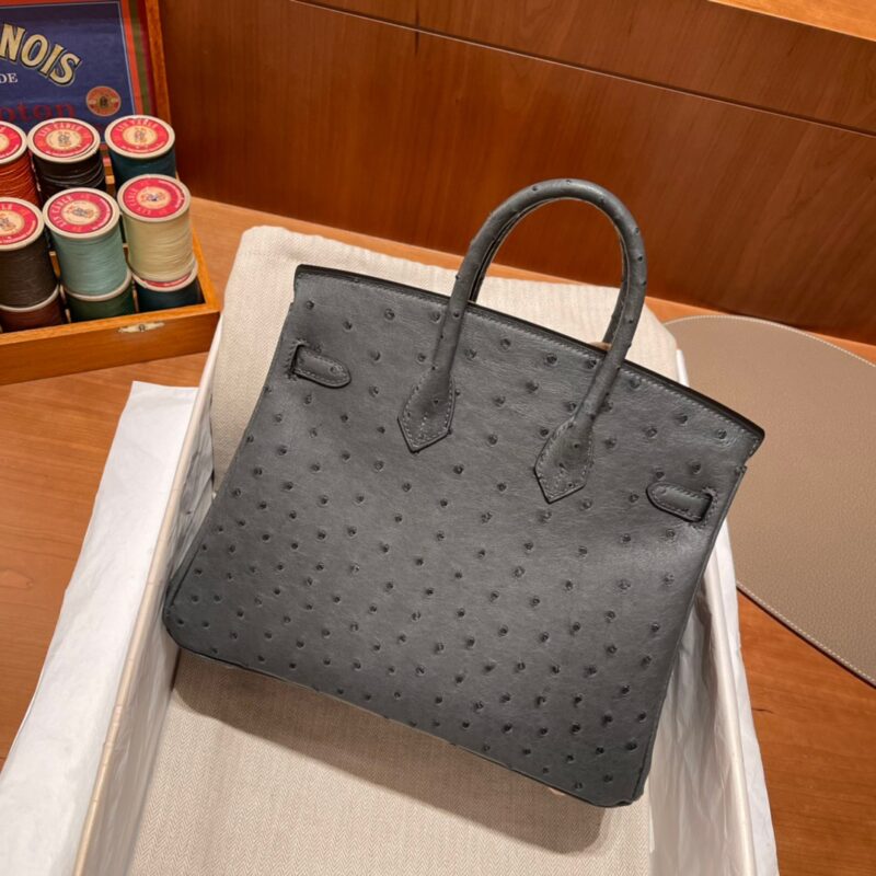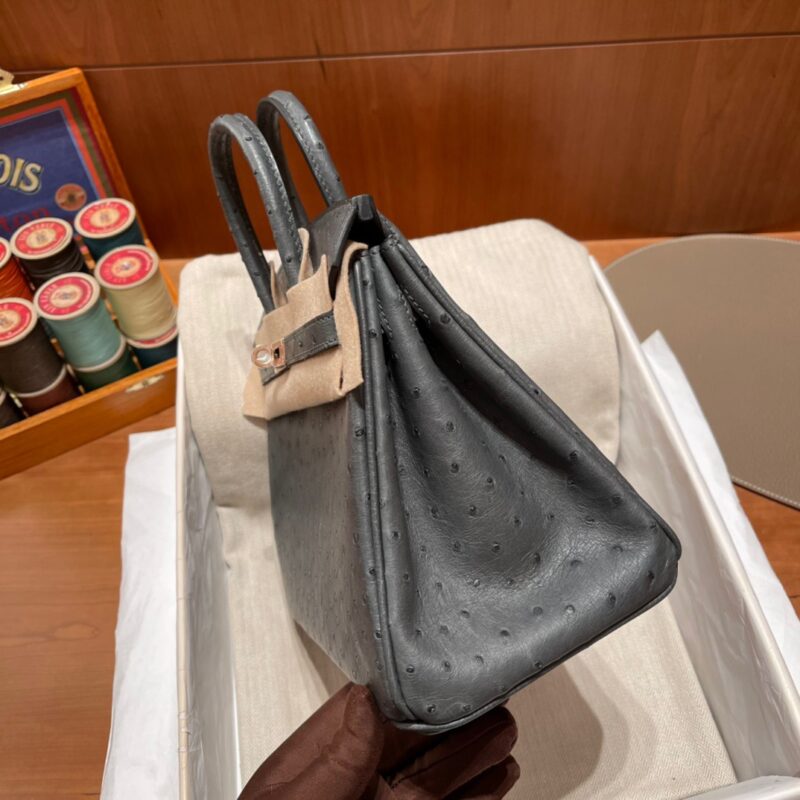 Birkin 25cm South Africa kk ostrich leather. 88 Graphite Rose. Gold Buckle