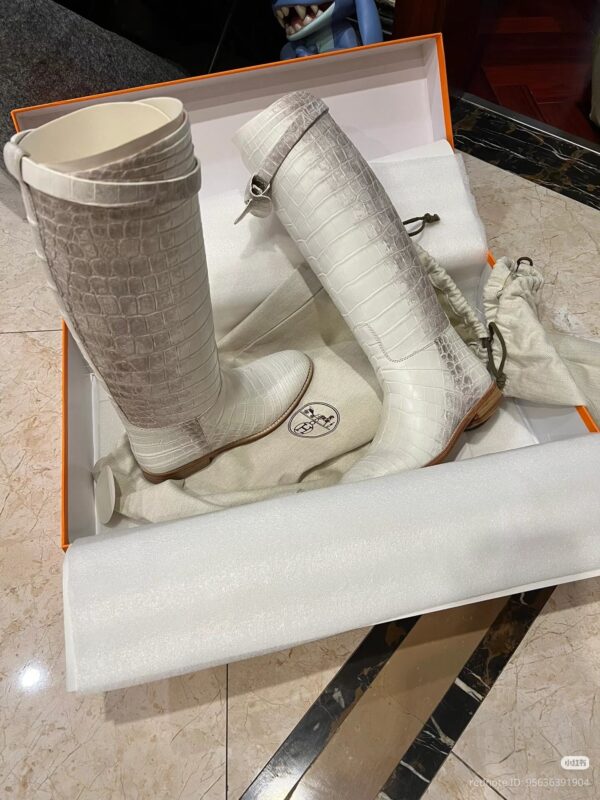 / Hermes Blanc Matte Niloticus Crocodile Himalaya Jumping Boots authentic quality