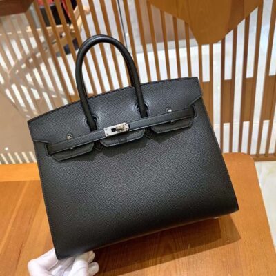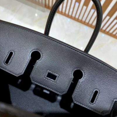 Birkin25cm black Imported Epsom cowhide silver buckle Original beeswax thread top hand sewing