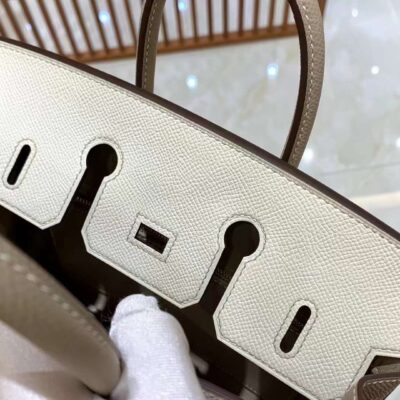 Birkin25cm elephant gray Imported Epsom cowhide silver buckle Original beeswax thread top hand sewing