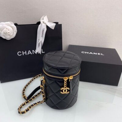 𝘾𝙝𝙖𝙣𝙚𝙡 𝟮𝟭21/22ss autumn and winter Cylinder Cosmetic Bag. Lambskin