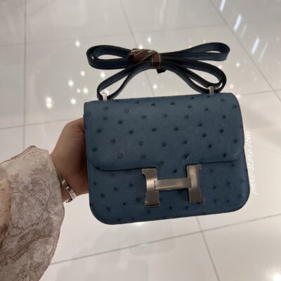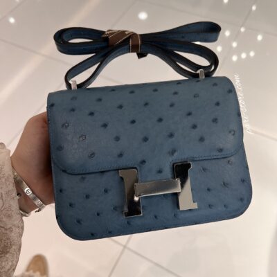 Constance 18 in Ostrich leather in Sapphire Blue colour. Fully hand-sewn. Silver hardware All bags are made of imported materials