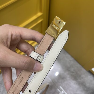 Fendi counters the same high-end casual thin belt for women. Soft top layer calfskin material lined with tree cream nubuck