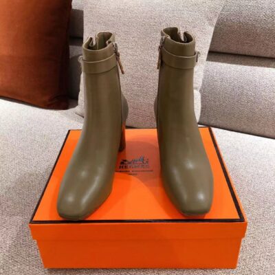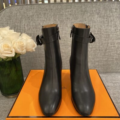 Hermes brand classic kelly buckle ankle boots // calf face cow inner layer leather and leather bottom. Size: 35-39 /