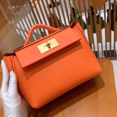 2424-mini poppy orange gold buckle Imported evercolor cowhide French beeswax thread 100% hand-sewn