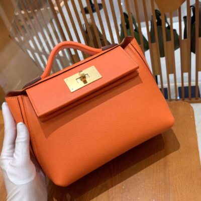 Mini24-24 orange Imported swift with Evercolor cowhide gold buckle Original beeswax thread top hand sewing