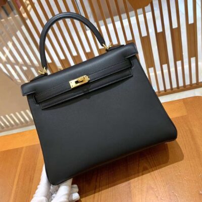 KL25cm Black. Gold Buckle Imported Swift cowhide. French original beeswax thread. Fully hand-sewn