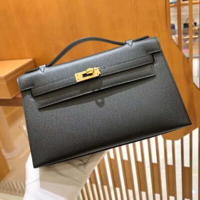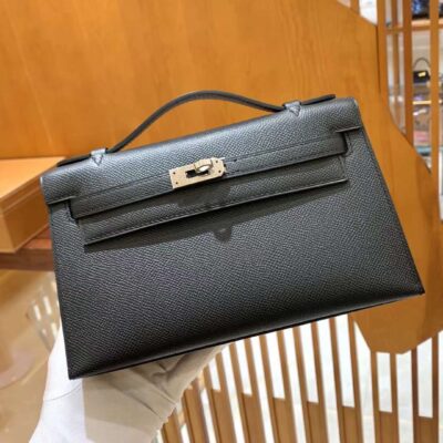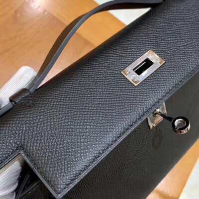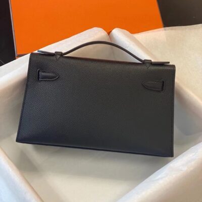 Kelly Pochette Generation Evening Bag Clutch. Epsom leather. 89 Noir. Silver Buckle. It is a perfect partner with the pig