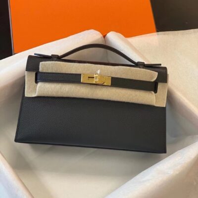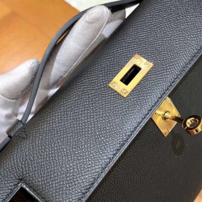 Minikelly22cm black Imported Epsom cowhide gold buckle Original beeswax thread top hand sewing