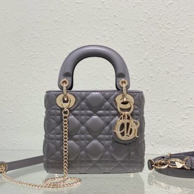 Lady Dior three-grid gray, the classic Diana handbag embodies Dior’s profound insight into elegance and beauty. Meticulously crafted with bold