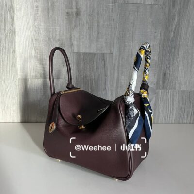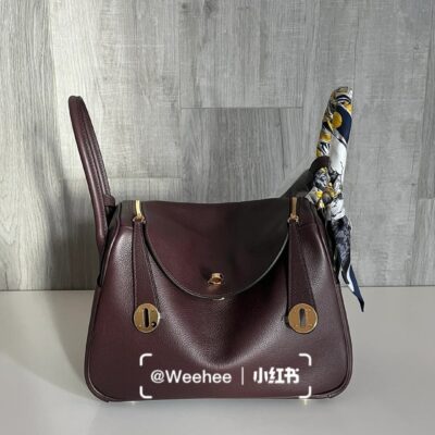 Lindy 30 in Bordeaux red Clemence leather sewn with 24k gold plated hardware. This isn’t our product, it’s an example,