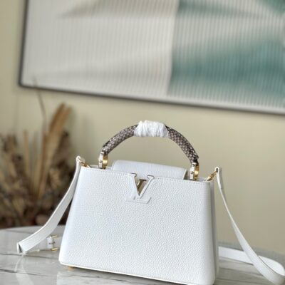 Top original single M48865 White Lizard Small Capucines Handbag is delicately blends graceful lizard skin outer layer, delicate sheepskin inner