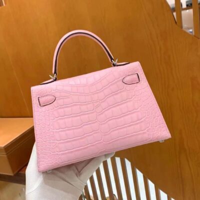 Mini Kelly 19 American Crocodile in Sakura Pink