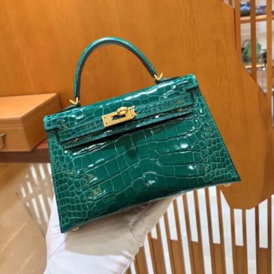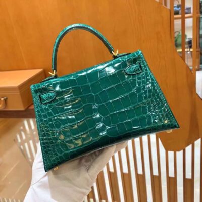 Mini Kelly 2nd Generation 19cm Emerald Green Imported first-class “□” American crocodile French beeswax thread 100% hand-sewn