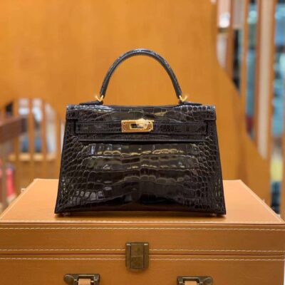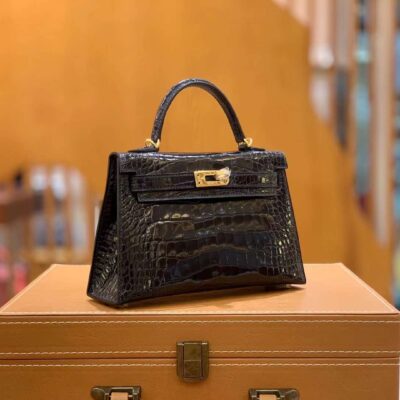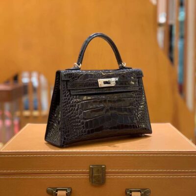Mini Kelly 2nd Generation 19cm Midnight Blue Imported first-class “□” American crocodile French beeswax thread 100% hand-sewn