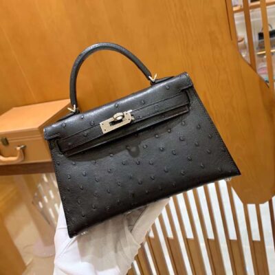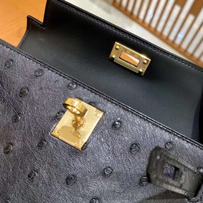 Mini Kelly Ostrich Noir