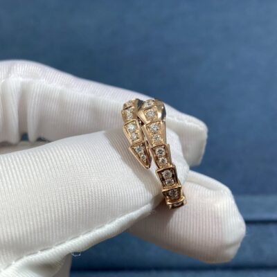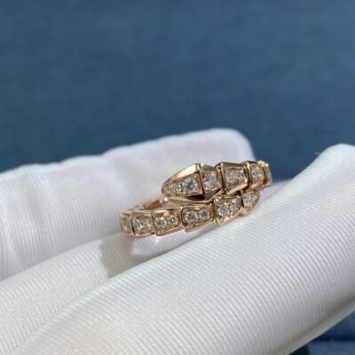Narrow Snake Ring All Over Diamonds, Rose Gold