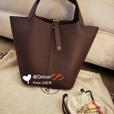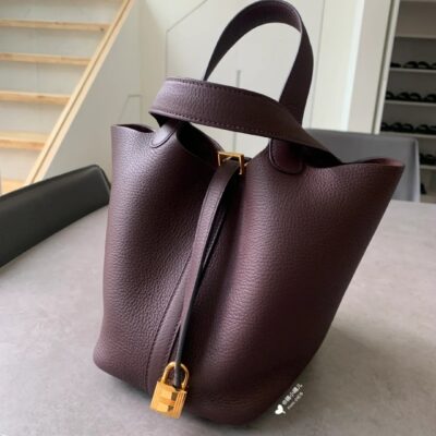 Picotin 18 in Taurillon Clemence leather in gold plated hardware. This isn’t our product, it’s an example, that can be