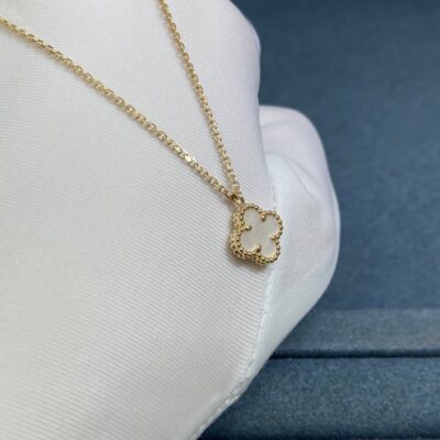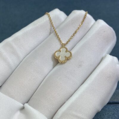 VCA Small White Shell Clover Necklace, Yellow Gold