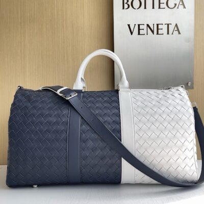 Тканая дорожная сумка Bottega Veneta действительно станет отличным спутником в путешествии. Молнии и кнопки оснащены превосходной фурнитурой, обеспечивающей конфиденциальность и