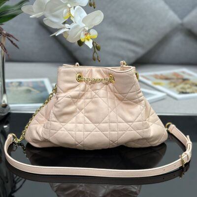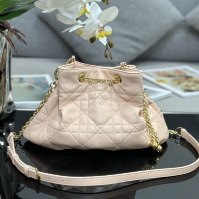 Lady D-Joy cross-panel embossed pink features bold quilted detailing with cannage topstitching and hand-embroidered Ornamental motifs for an Andalusian baroque