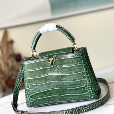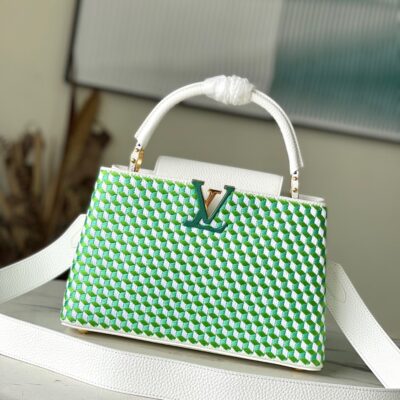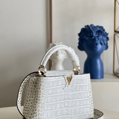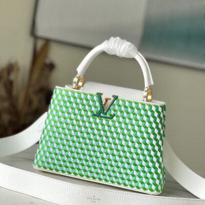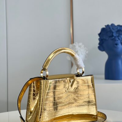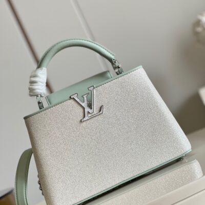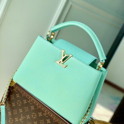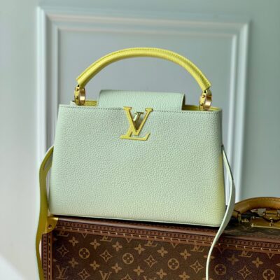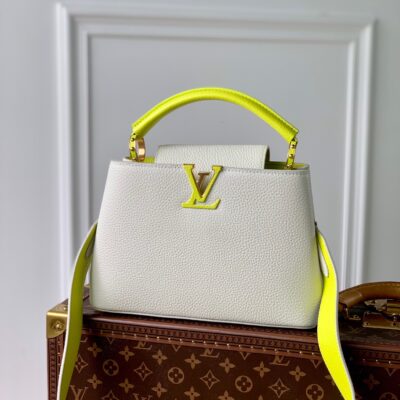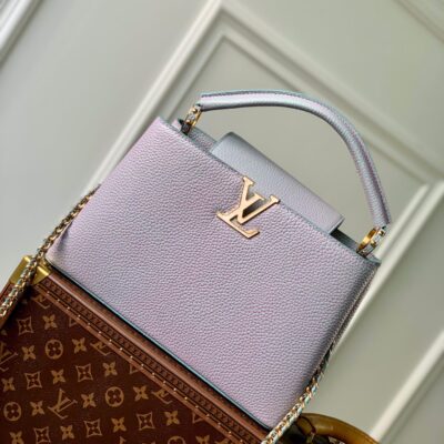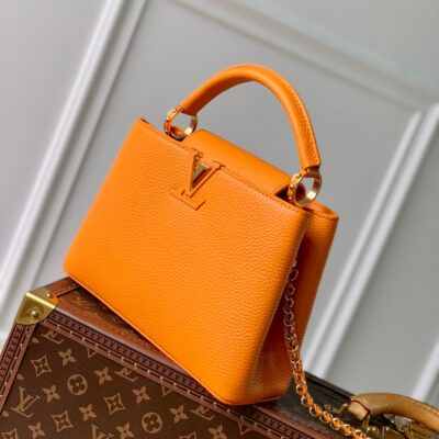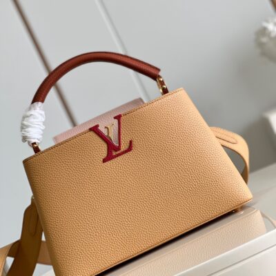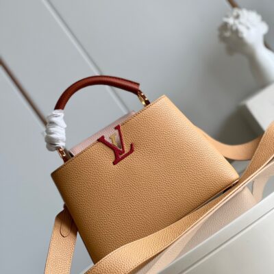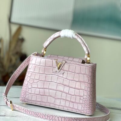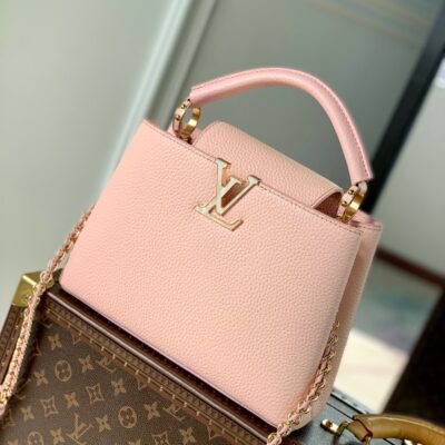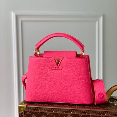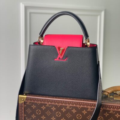 M59882 M94755 Black&Pin Rose/Medium Louis Vuitton Capucines BB Handbag Imported French calfskin. Shiny metal accessories. The unique Capucines cover can
