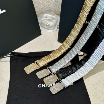 Double-sided Italian calfskin, with four-bevel silver pin buckle, width 3.5cm.