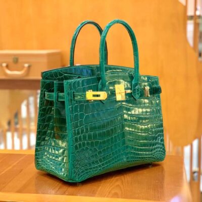 Birkin 30cm Emerald Green Imported first-class Nile crocodile. French beeswax thread. 100% hand-sewn