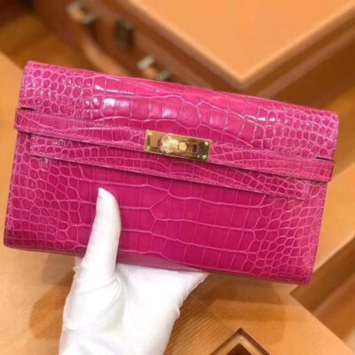 Kelly Long Wallet Pink Imported first-class American crocodile. Fully hand-sewn