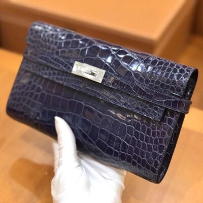 Kelly Long Wallet Sapphire Blue Imported first-class American crocodile. Fully hand-sewn