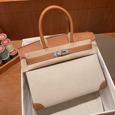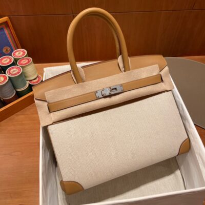 Birkin HAC Canvas and Swift 4B Biscuit (Biscuit), Silver BuckleA youthful Birkin canvas with swift leather. All hand-sewn. The weight