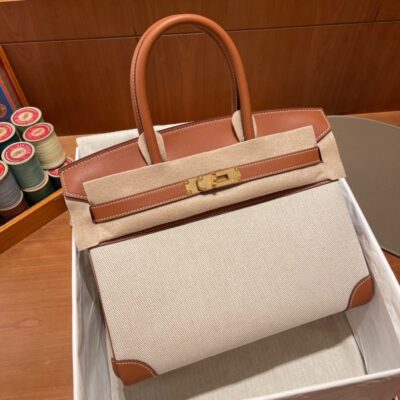 Birkin HAC Canvas and Swift 37 Gold Brown, Gold BuckleA youthful Birkin canvas with swift leather. All hand-sewn. The weight