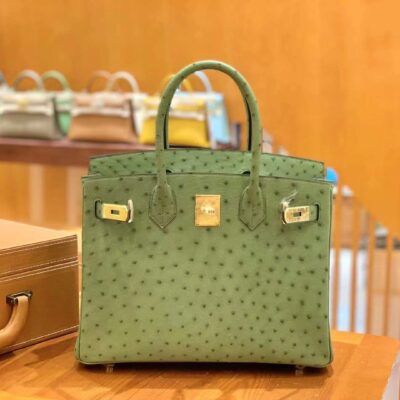 Birkin 30cm Avocado Green Gold Buckle Imported South African KK grade ostrich leather. All hand-sewn