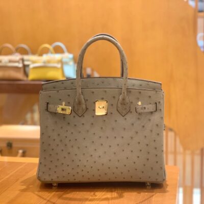 Birkin 30cm Eutope Gold Buckle Imported South African KK grade ostrich leather. All hand-sewn