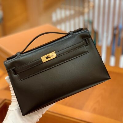 Mini Kelly Generation 22cm Black Gold Buckle Imported BOX cowhide. Fully hand-sewn