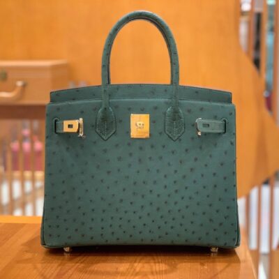 Birkin 30cm Malachite Green Gold Buckle Imported South African KK grade ostrich leather. All hand-sewn