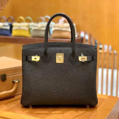 Birkin 30cm Classic Black Gold Buckle Imported South African KK grade ostrich leather. All hand-sewn