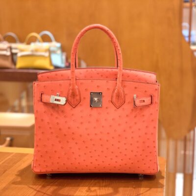 Birkin 30cm Texas Pink Silver Buckle Imported South African KK grade ostrich leather. All hand-sewn