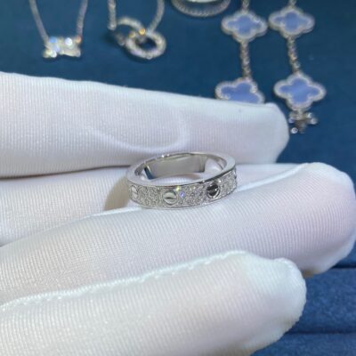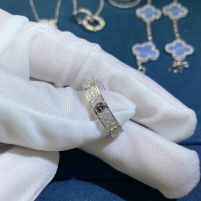 Narrow Three Row Diamonds Gypsophila Ring, White Gold