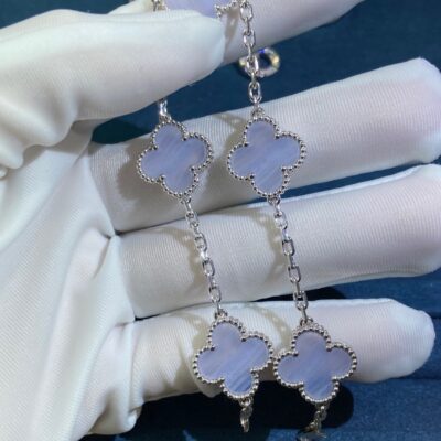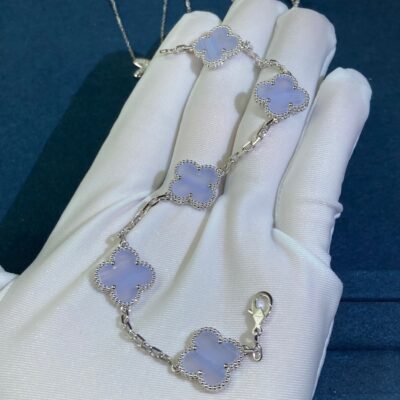 Five-Flower Purple Chalcedony Four-Leaf Clover Bracelet, White Gold