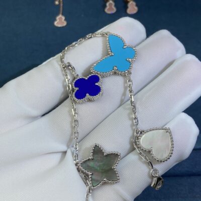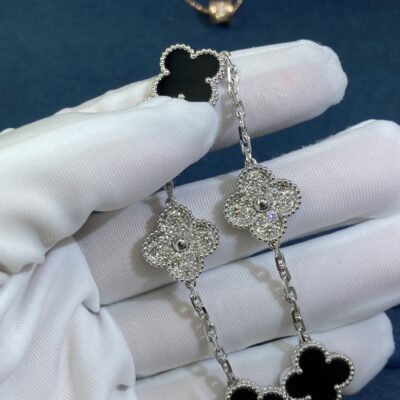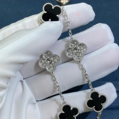 VCA Five-Flower Black Onyx Diamond Clover Bracelet, White Gold