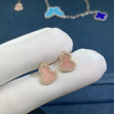 Powder Meringue Gourd Stud Earrings, Rose Gold