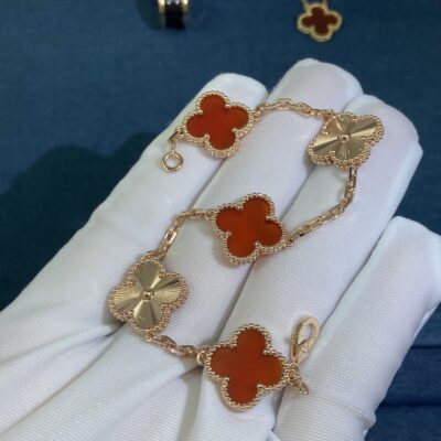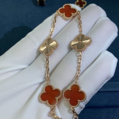 VCA Five-Flower Laser Carnelian Four-Leaf Clover Bracelet, Rose Gold