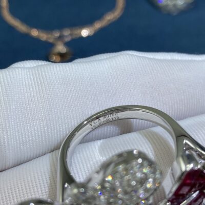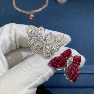 Double Butterfly Full Diamond Ruby Ring, White Gold