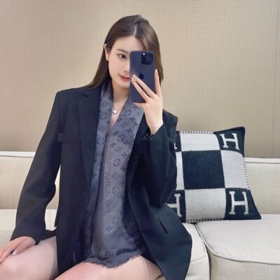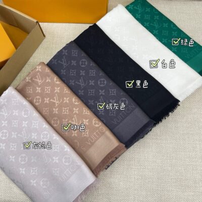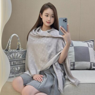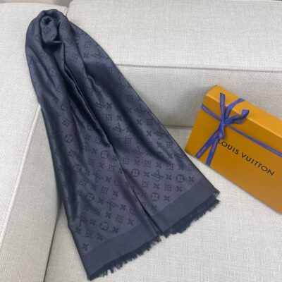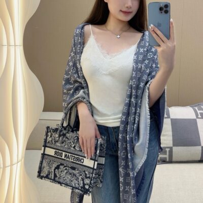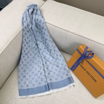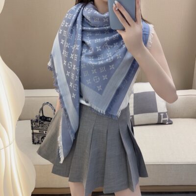 LV Letter Shawl 140x140cm 60% Silk 40% Wool This Monogram Denim shawl uses jacquard technology to present the classic Monogram