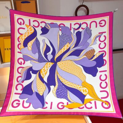 Original Gucci enlarged flower print twill 90cm square scarf. Deduce the brand logo with unconstrained creativity, injecting a touch of